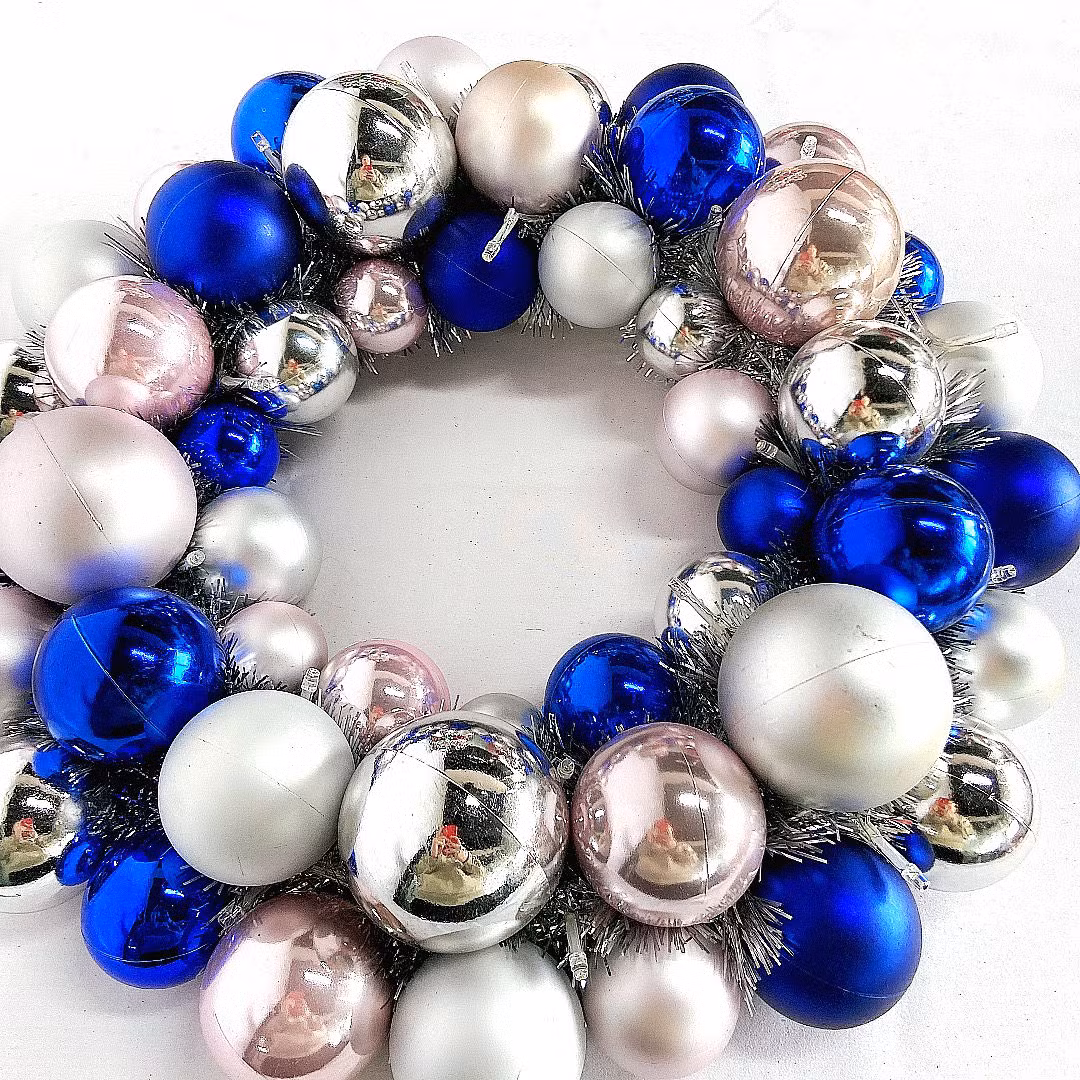 Senmasine azul 45cm de plata mezclados de Ornamento de Navidad decoración de bolas de adorno navideño guirnalda bola con base de plástico colgando de la puerta delantera